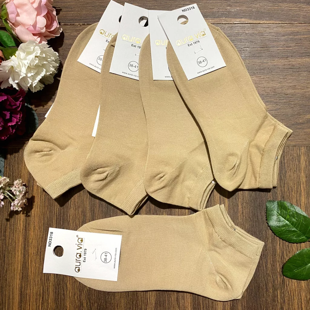 AURA.VIA Női Bokazokni 5 Pár – Pamut, Bézs Szín