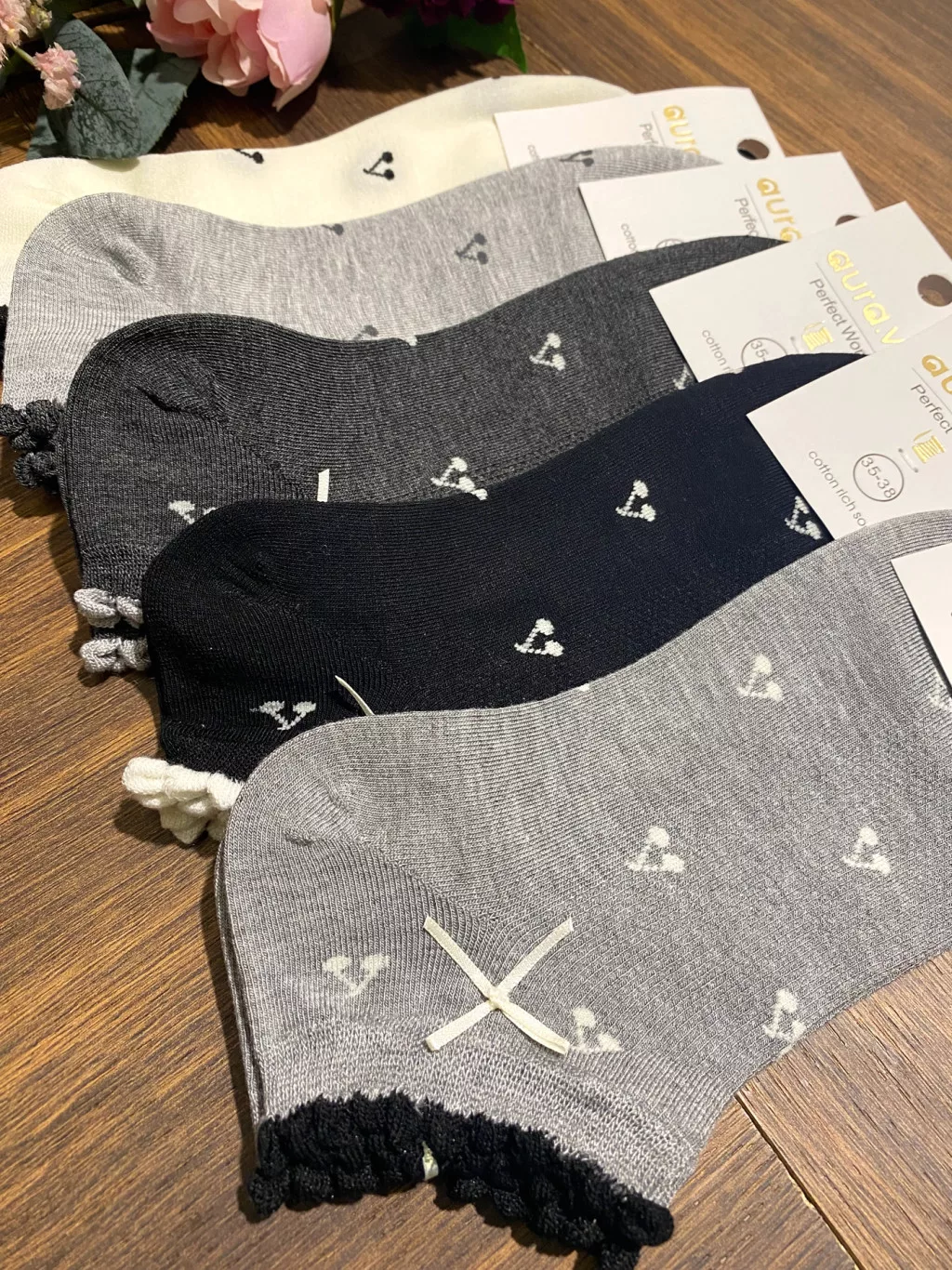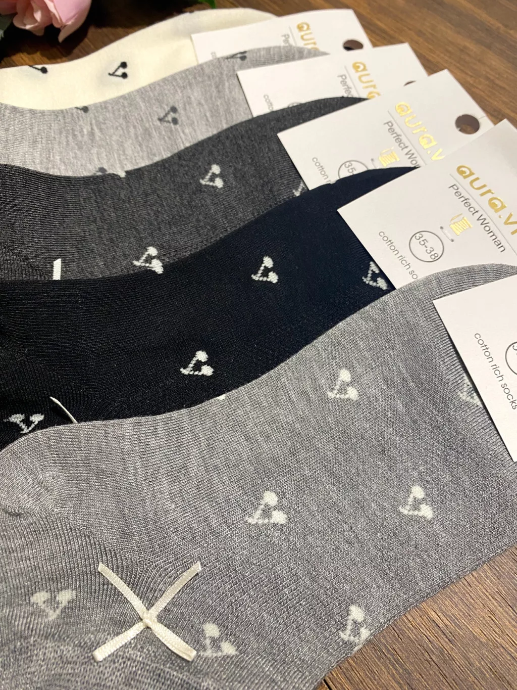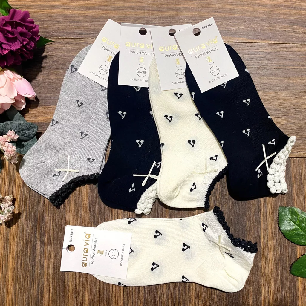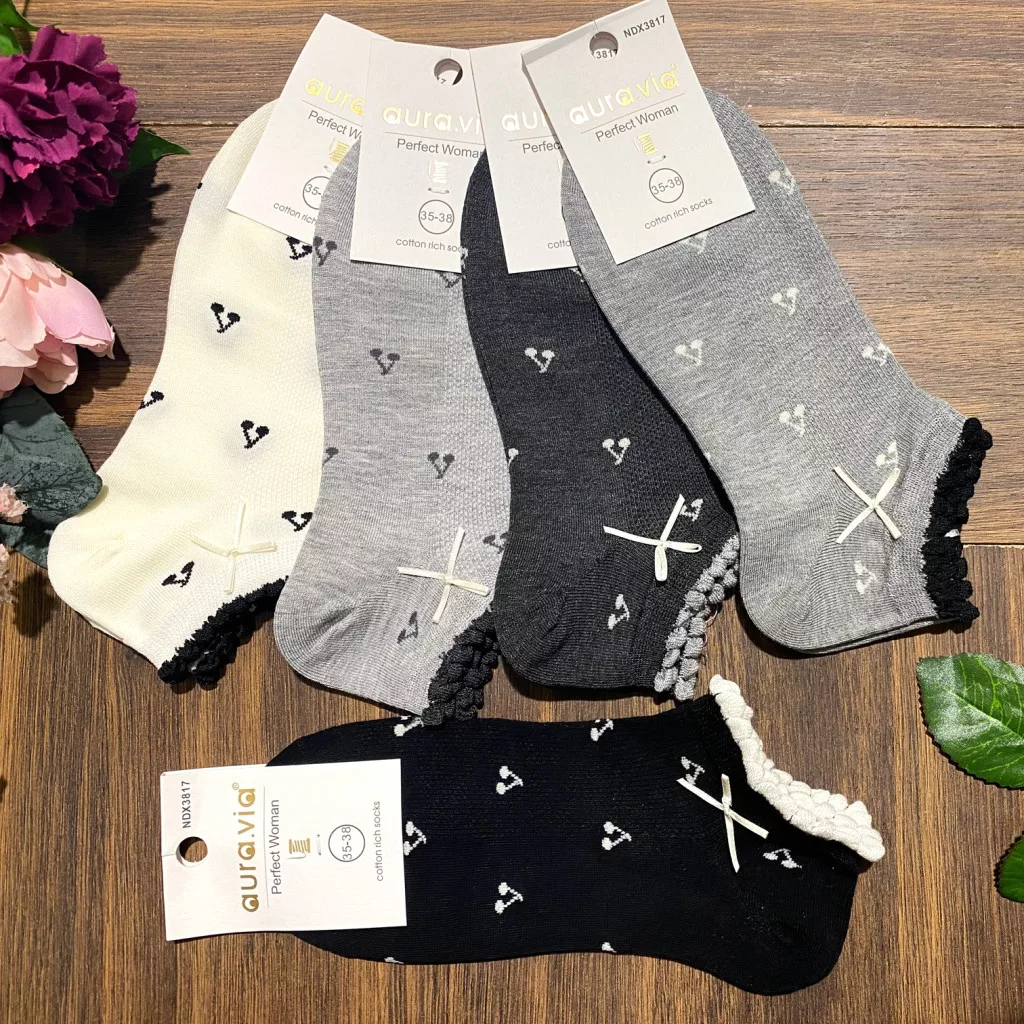 AURA.VIA Női Bokazokni 5 Pár – Pamut Zokni Masnival