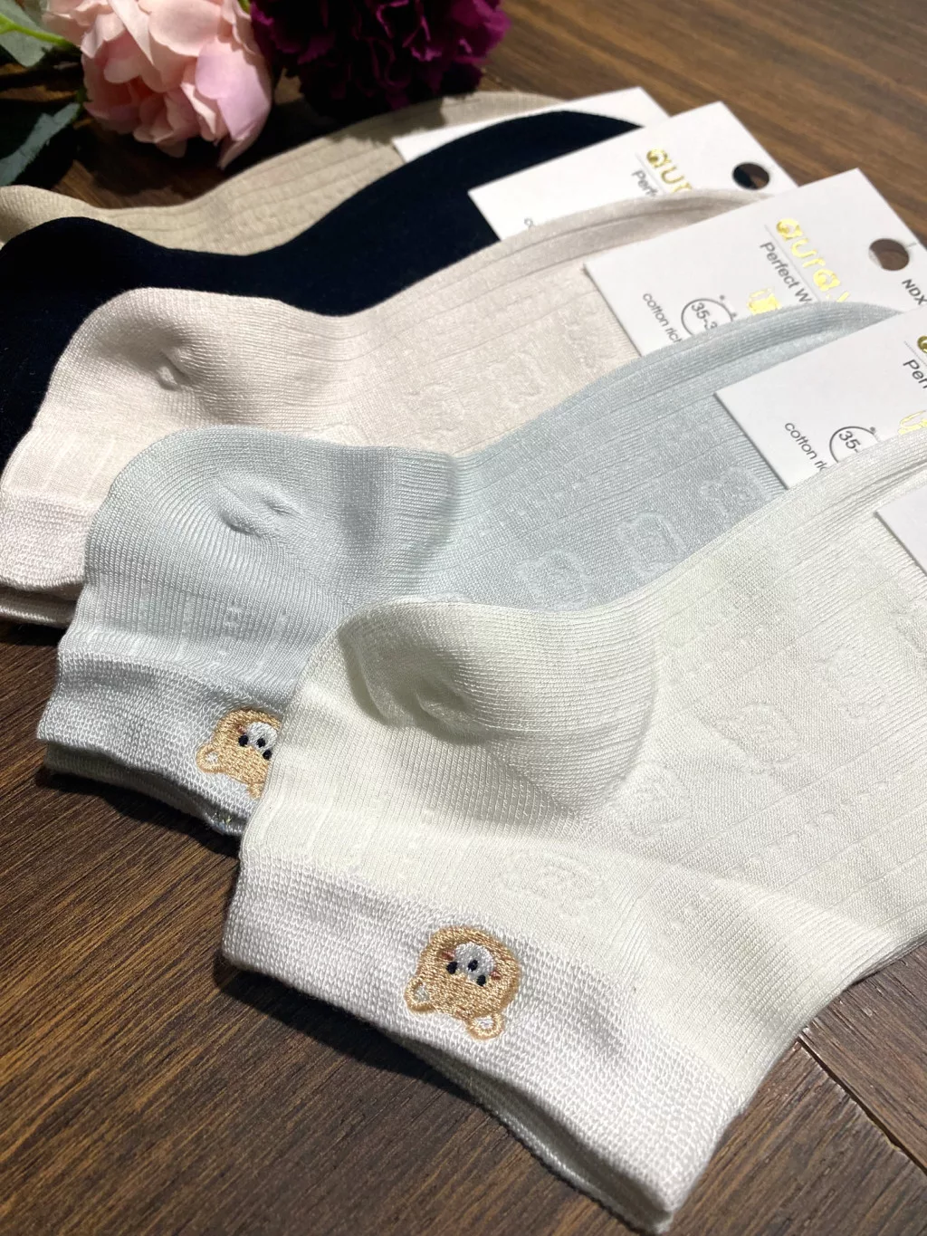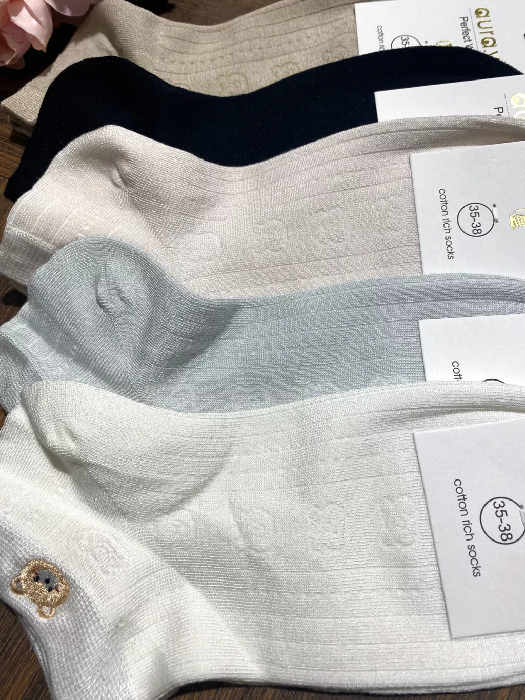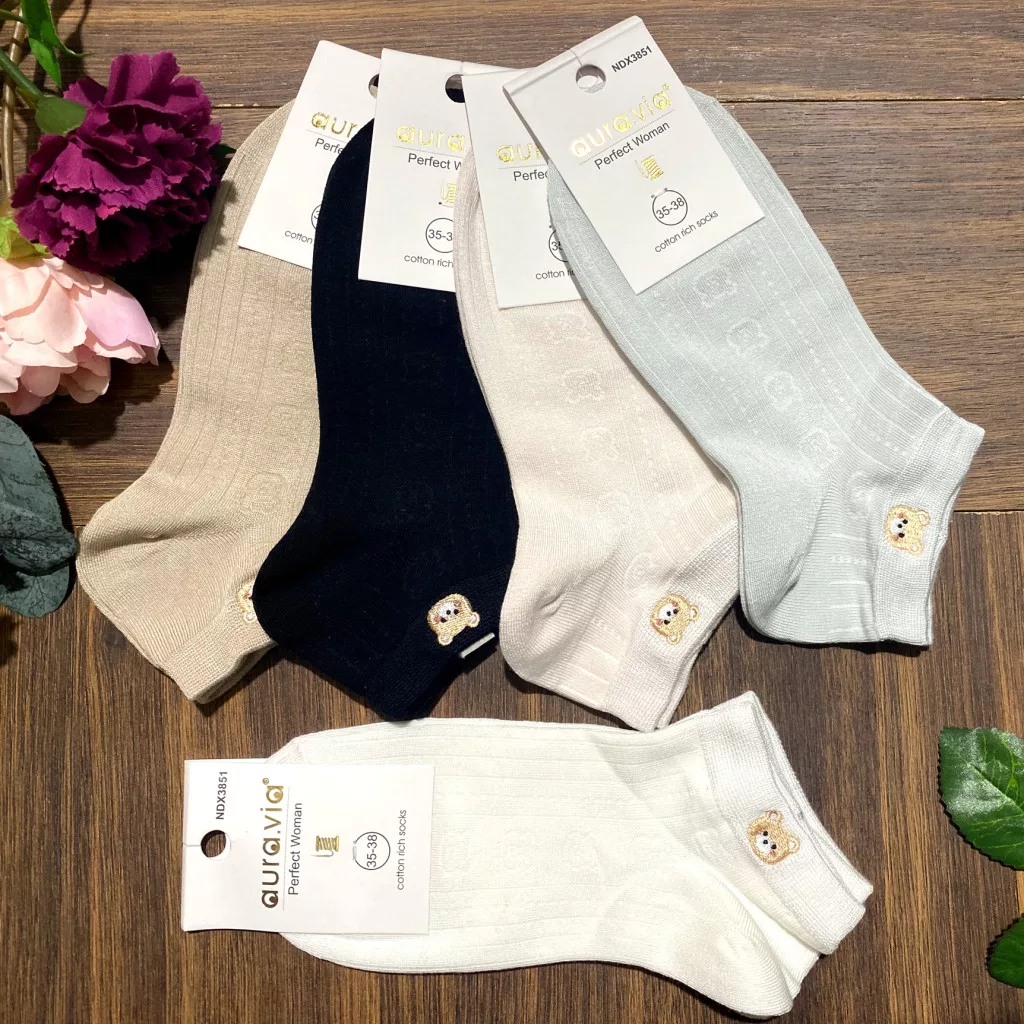 AURA.VIA Női Bokazokni 5 Pár – Pamut Mintás Zokni Maci Mintával